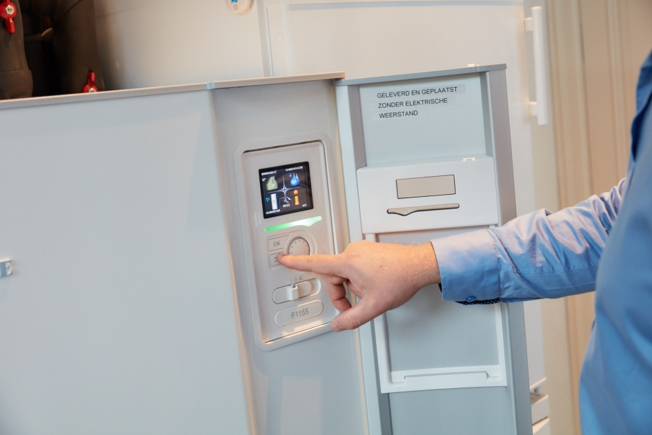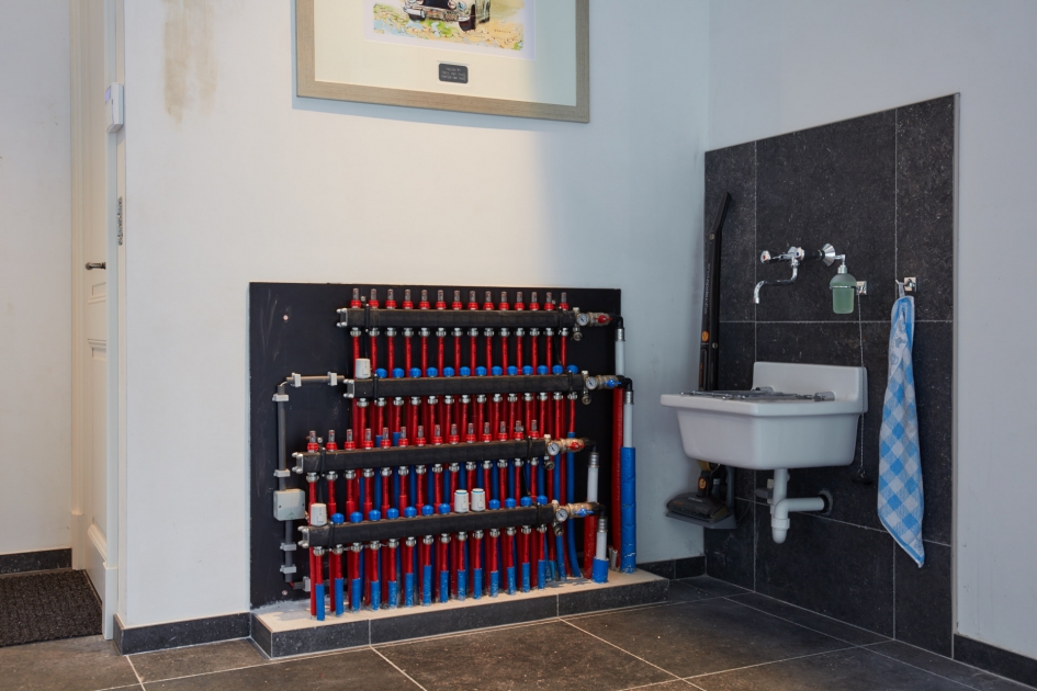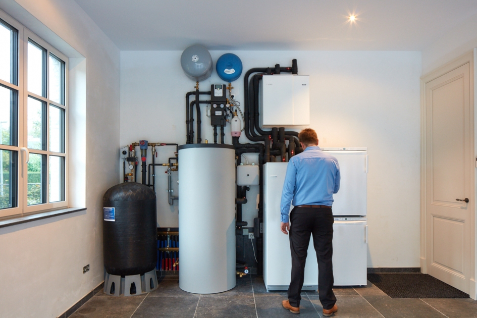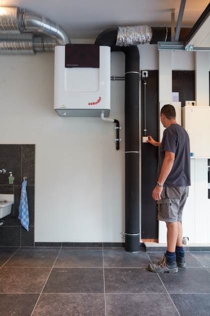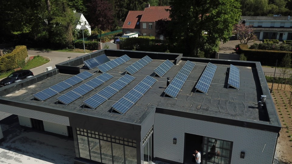 Hier hebben we een energieneutrale woning (E-peil = 0) voorzien van een geothermische warmtepomp. Deze voorziet de woning van warm water, verwarming en koeling. De voorverwaming en voorkoeling van de geventileerde lucht wordt ook door de warmtepomp voorzien. Een zonneboiler maakt het plaatje af. De zonnepanelen leveren het benodigde elektrische vermogen om de woning van warmte en koeling te voorzien.