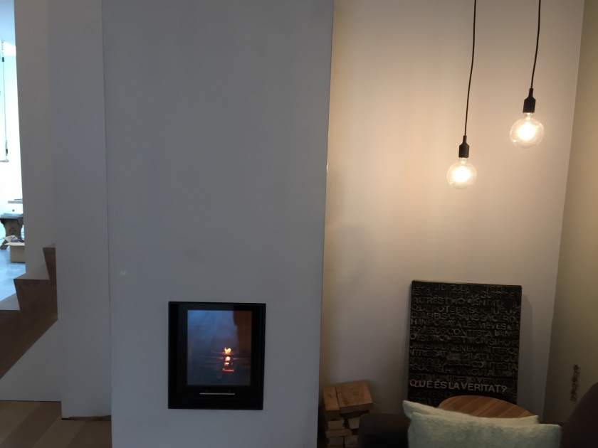 Energieconcept met Lucht/water warmtepomp General voor verwarming en koeling, Jaga climacanal convectoren, cv-haard Spartherm mini H2O in combinatie met buffervat Tisun. Verwarming en koeling, verlichting, ventilatie, screens en rolluiken aangestuurd met Qbus domonticasysteem.