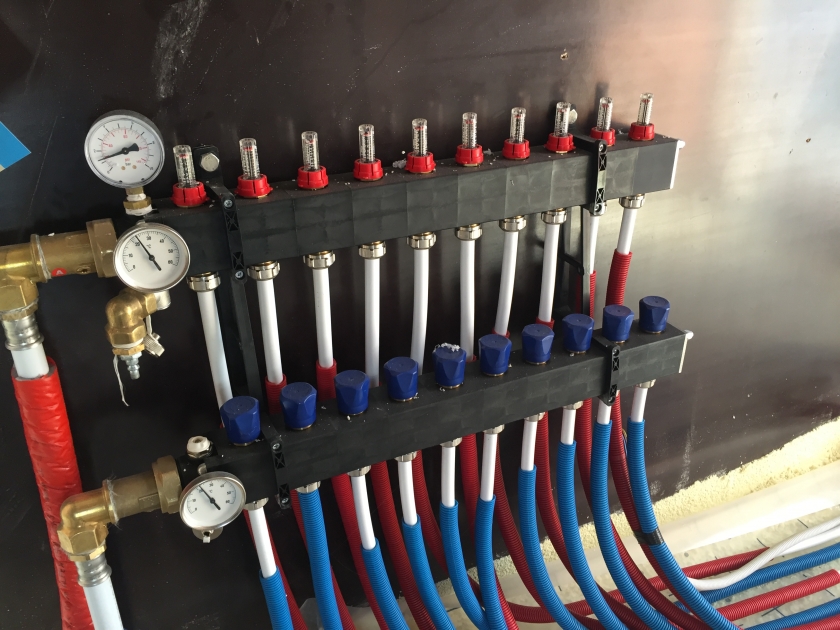 Wintermodus: De geothermische warmtepomp Nibe met buffervat Tisun staat in voor de centrale verwarming met vloerverwarming en de bereiding van sanitair warm water. Wanneer de haard cv-haard wordt gebruikt zal deze de taak van de warmtepomp overnemen.